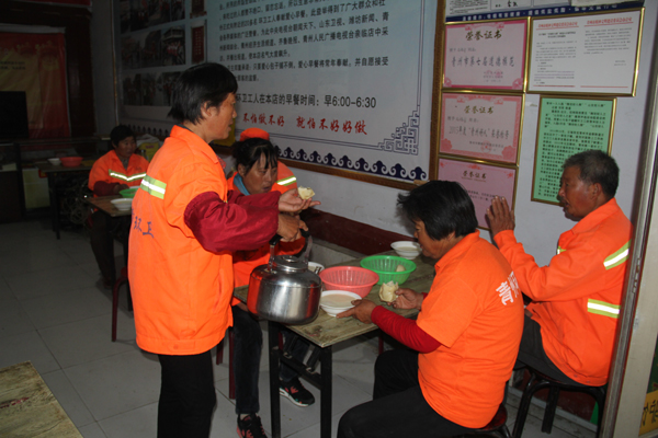 石福軍的這家包子鋪是2014年10月底開張的。在此之前,石福軍經(jīng)營了10年酒店,生意好時(shí)日收入在萬元左右。后來政府搞新城區(qū)改造,他的酒店正好在拆遷范圍之內(nèi),街道辦事處的干部天天上門來做工作。說實(shí)話,這事攤在誰身上都心疼,他也舍不得,但他還是痛快地把協(xié)議簽了。他說:“這是全市的規(guī)劃,是為了大眾的利益,政府花那么大力氣搞建設(shè),目的都是為了老百姓好,環(huán)境改善了,最終受益的還是我們自己,我們應(yīng)該積極支持。” “包子鋪”變成“愛心包子鋪”,緣于包子鋪開張后不久的一件事兒。有一天早晨,天還沒亮,石福軍像往常一樣搬著牌子準(zhǔn)備往門口放,發(fā)現(xiàn)一位環(huán)衛(wèi)工人正在清掃他店鋪門前的樹葉。石福軍這才恍然大悟,怪不得門前始終那么干凈呢,原來是人家環(huán)衛(wèi)工人一直幫他掃。按理說環(huán)衛(wèi)工并不負(fù)責(zé)他家門口的衛(wèi)生,他便說:“謝謝師傅!進(jìn)來吃個(gè)包子吧!蹦俏画h(huán)衛(wèi)工人擺擺手,回身繼續(xù)掃馬路去了。 石福軍等環(huán)衛(wèi)工人掃完地以后,執(zhí)意要拉他進(jìn)去吃包子。聊天后,石福軍得知,環(huán)衛(wèi)工師傅們每天凌晨四五點(diǎn)鐘就要上街,打掃完衛(wèi)生才能回家或就近吃早飯?吹江h(huán)衛(wèi)工如此辛苦,石福軍心中萌生了一個(gè)念頭:我開的是包子鋪,何不為他們免費(fèi)提供一頓早餐呢?為此,石福軍找到相熟的青州市志愿者協(xié)會(huì)秘書長紀(jì)博,將自己的想法告訴他。 于是,在眾多志愿者的幫助下,青州市第一家環(huán)衛(wèi)工愛心就餐點(diǎn)在石福軍的包子鋪正式掛牌,到現(xiàn)在已經(jīng)是整整兩年的時(shí)間了。每天早上6:00—6:30,包子鋪里有兩張餐桌是空著的,環(huán)衛(wèi)工人們就會(huì)如約而至,就像回到了自己家里一樣。