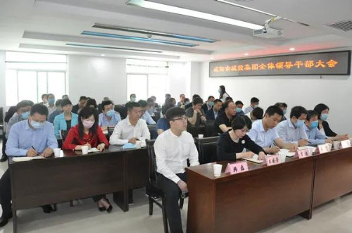 市國資委黨委書記、主任韓彥霄出席會議并講話,市城投集團公司黨委書記、董事長李立戰(zhàn)主持會議,市國資委黨委委員、副主任唐璞,市國資委組干科科長吳昭,市委組織部干部二科干部秋元元出席會議。集團公司領(lǐng)導班子全體成員、機關(guān)中層干部、下屬各單位領(lǐng)導班子成員共50余人參加會議。