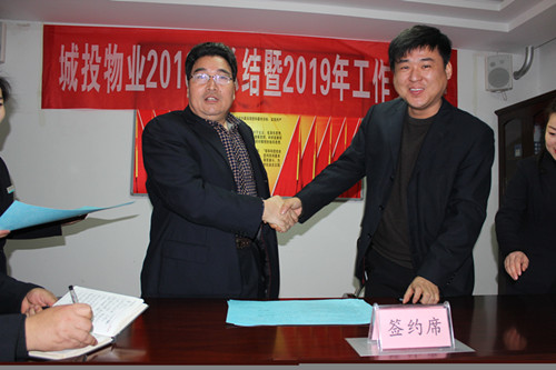 會(huì)議表彰了物業(yè)公司2018年度先進(jìn)班組和先進(jìn)個(gè)人,并完成了2019年度《經(jīng)營(yíng)目標(biāo)責(zé)任書》和《安全目標(biāo)責(zé)任書》的簽訂。